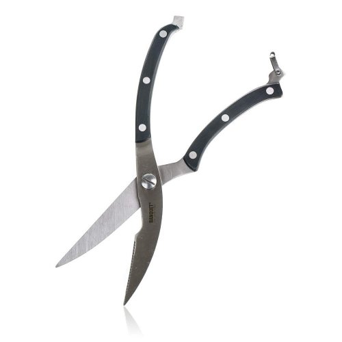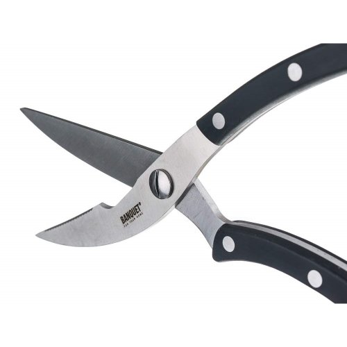 Nůžky na drůbež CULINARIA 25,5 cm jsou vybaveny zahnutým ostřím pro snadnou manipulaci a rychlé porcování drůbeže. Nůžky jsou vyrobeny z oceli, hladké ergonomické rukojeti jsou vyrobeny z plastu v černé barvě a na konci jsou opatřeny pojistkou.