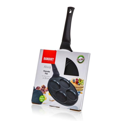 Hliníková litá pánev na lívance ALIVIA 26 cm má vnitřní nepřílnavý povrch a je vhodná na všechny typy sporáků včetně indukce. Lívanečník můžeme použít na přípravu lívanečků, volských ok a bramboráků o průměru 10 cm.