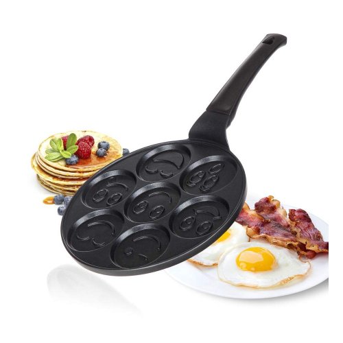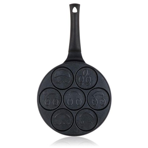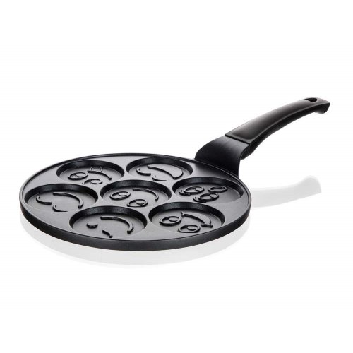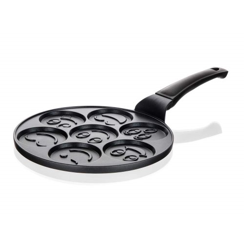 Hliníková litá pánev na 7 lívanců ALIVIA Smile 26 cm má vnitřní nepřílnavý povrch a je vhodná na všechny typy sporáků včetně indukce. Lívanečník s dětskými motivy na dnu pánve, můžeme použít na přípravu lívanečků, volských ok a bramboráků o průměru 8 cm.