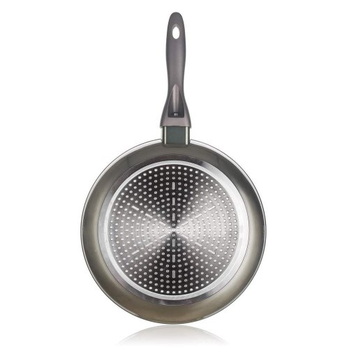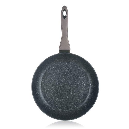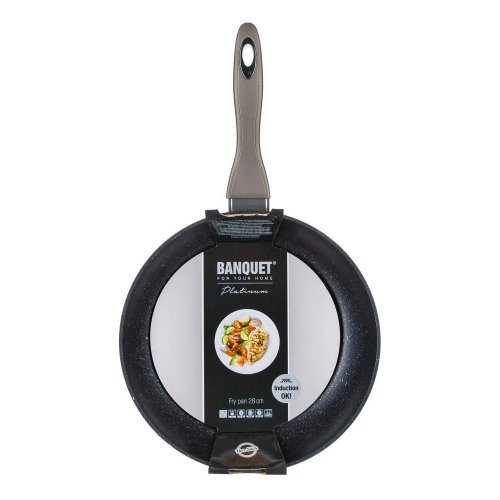 Hliníková litá kovaná pánev METALLIC PLATINUM s nepřílnavým povrchem o rozměru 28 x 5,3 cm, vnější karbon metalický nástřik, tloušťka stěny 3 mm, plně indukční dno, soft-touch rukojeť. Nepřilnavý povrch je velmi tvrdý a odolný proti poškrábání. Pánev je odolná proti nárazu a deformaci tvaru. Vysoká tepelná vodivost zajišťuje rychlé a ekonomické vaření - dlouho drží teplotu.