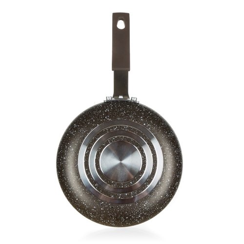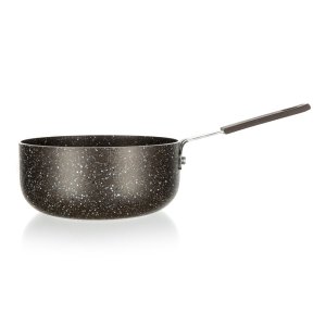 Hliníkový presovaný mini rendlík GRANITE Brown 14 x 3 cm s vnitřním 2vrstvým nepřilnavým povrchem v hnědé mramorové struktuře. Vnější povrch je opatřen 2vrstvým žáruvzdorným nástřikem v hnědé mramorové barvě. Rendlík není vhodný na indukci.