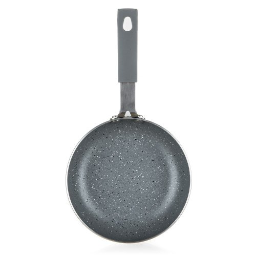 Hliníkový presovaný mini rendlík GRANITE Grey 14 x 6 cm s vnitřním 2vrstvým nepřilnavým povrchem v šedé mramorové struktuře. Vnější povrch je opatřen 2vrstvým žáruvzdorným nástřikem v šedé mramorové barvě. Rendlík není vhodný na indukci.