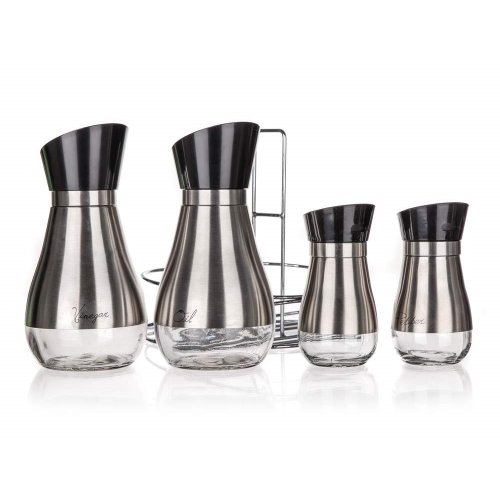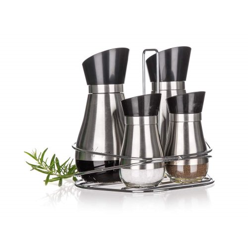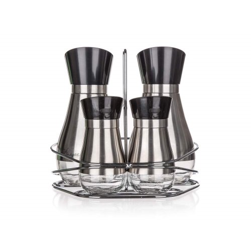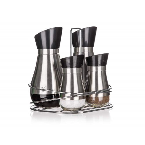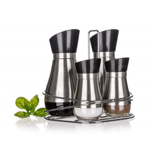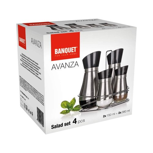 Stolní dochucovací sada AVANZA 4 ks v praktickém stojanu je určena pro domácnost i gastronomická zařízení. Vyrobeno z oceli a skla. Není vhodné do myčky.