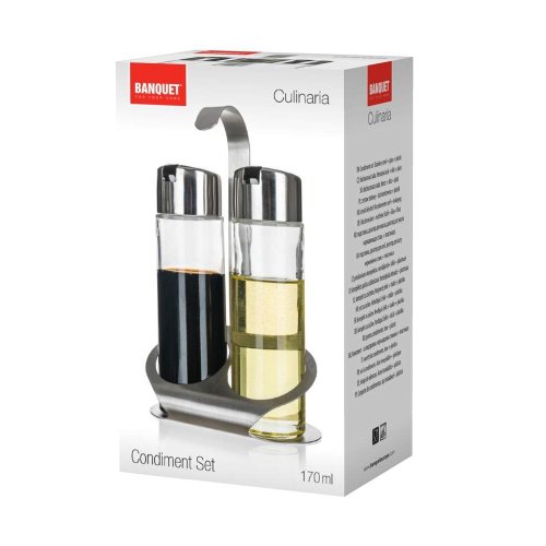 Sada dochucovací CULINARIA 170 ml, 3 ks je vhodná do domácnosti i gastro provozu. Víko: nerez 18/8 a plast PP a silikonové těsnění, síla nerezi 0,40 mm, dozy: sklo,stojan nerez 18/0, základna: 1,00mm, držadlo 1,5 mm.