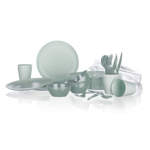 Praktická kempingová sada TRAVEL obsahuje 4x plastové talíře 23,5cm, 4x plastové kelímky 250ml, 4x plastové lžíce 18,8cm, 4x plastové vidličky 18,5cm, 4x plastové nože 18,7cm, 4x plastové misky 250ml. Vše uzavřeno v praktické dóze.