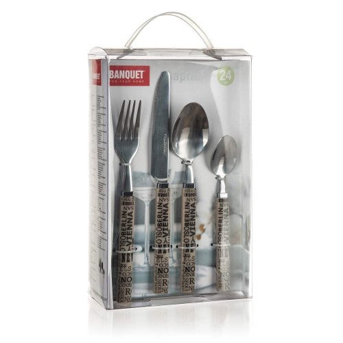 Sada příborů CAPITAL 24 dílů obsahuje: 6x polévkovou lžíci, 6x vidličku, 6x jídelní nůž a 6x čajovou lžičku. Povrchová úprava lesk, nerez 18/0 o síle 1,8 mm, plastové držadlo s dekorem. Příbory nejsou vhodné do myčky nádobí.