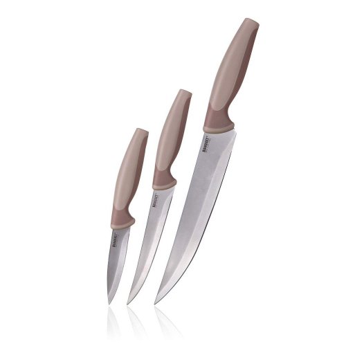 3 dílná sada TRINITY obsahuje praktický nůž 18,5 a 23,5 cm a porcovací nůž 32 cm. Ocelové nože patří mezi nepostradatelné pomocníky v každé kuchyni. Výběr vhodného nože nám usnadní krájení či porcování potravin.