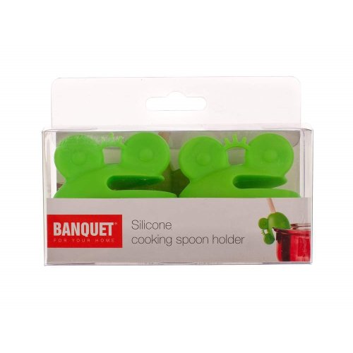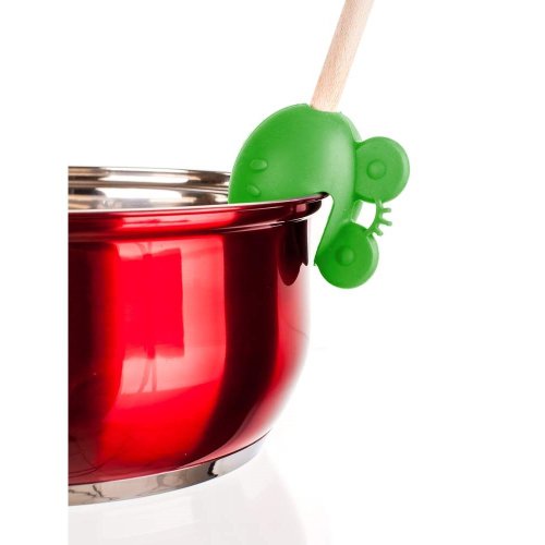 Silikonové držáky na vařečky CULINARIA green, rozměry: 9 x 8,2 x 4,2 cm, pomůcka na uchycení vařečky k nádobí. Silikon je odolný vysokým teplotám (do 240 st.C) a držáky lze mýt v myčce na nádobí. Silikon je velmi populární materiál, který pro své jedinečné vlastnosti našel své uplatnění i v kuchyni. Vyrábí se z něj různé druhy forem na pečení, vály a válečky na těsto, stěrky, mašlovačky, různé druhy kuchyňské náčiní a mnohé další výrobky.