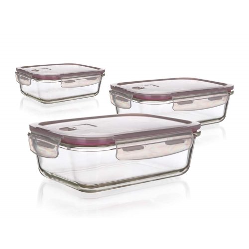 Sada dóz LORA 550 ml, 950ml a 1450ml jsou hermeticky uzavíratelné skleněné nádoby, které jsou vhodné pro uchovávání potravin v čerstvém stavu, zmrazování a ohřívání. Dokonale se hodí do pečící trouby (bez víčka) i mikrovlnné trouby. Díky speciálnímu víku je dóza ideální pro přepravu potravin. V nabídce máme několik velikostí.
