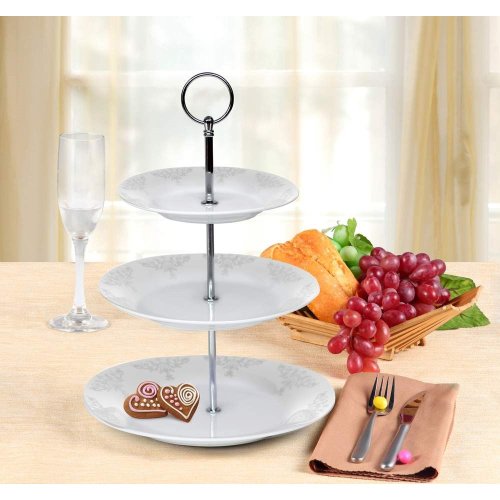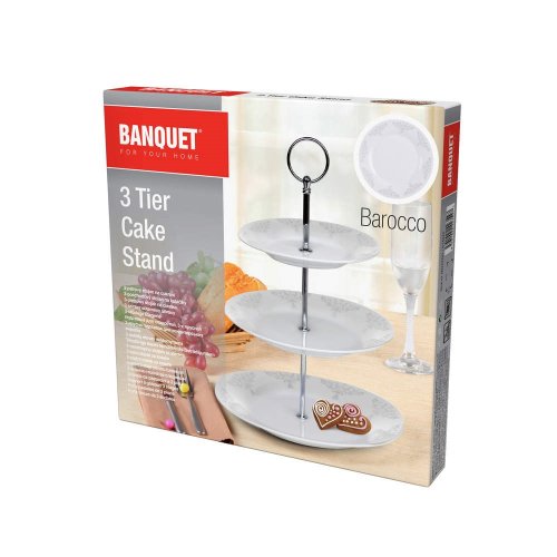 3patrový stojan na cukroví BAROCCO s dekorem je vhodný nejen pro servírování cukroví, dortíku, ale též ovoce. Stojan je vyrobený z porcelánu a kovu.