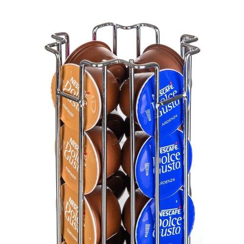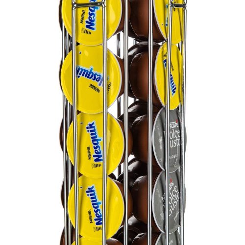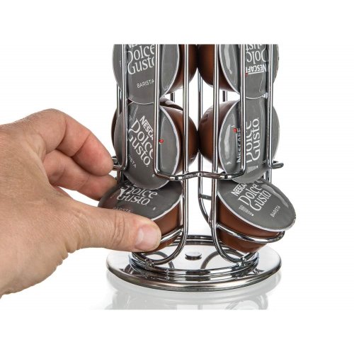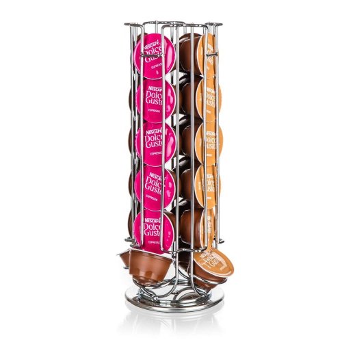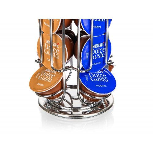 Stojan na kávové kapsle LINEA Dolce Gusto vyrobený z oceli, je šikovný pomocník pro skladování kapslí. Stojan je otočný a vejde se do něj až 24 ks Dolce Gusto kávových kapslí. Kapsle se doplňují a odebírají spodní částí stojánku. Rozměry: 13,5 x 13,5 x 32,5 cm.
