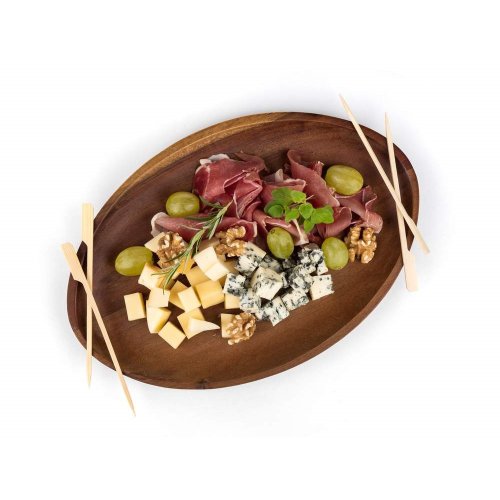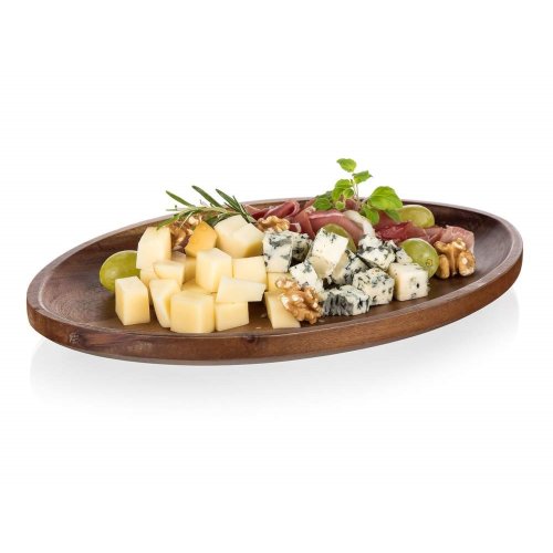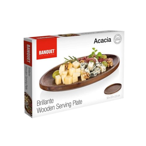 Servírovací talíř 33 x 23 x 2,5 cm z přírodní tmavé akácie umožní podávat sladké či slané pochutiny, které máte rádi. Je ohraničen vyšším krajem, takže vše zůstane tam kde má. Svůj talíř můžete doplnit o další výrobky z naší řady BRILLANTE ACACIA.