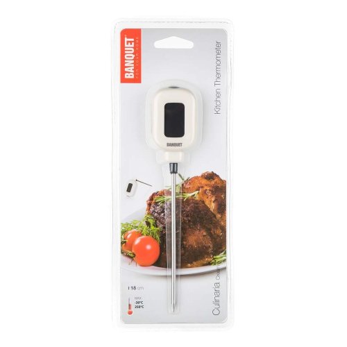 Teploměr kuchyňský digitální CULINARIA je velmi praktický pomocník do kuchyně. Celková délka výrobku je 18 cm. Napájení baterií 1 x CR2032 (baterie není součástí položky). Kuchyňský digitální teploměr má dlouhou nerezovou sondu s čidlem, která se dá jednoduše zasunout do jakéhokoliv jídla a zjistit tak aktuální teplotu. Teplotní rozpětí: -30 až 250 st. C.