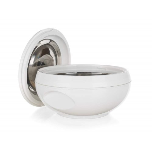 Termohrnec s poklicí AVANZA 5 l, barva bílá je praktický pro uchovávání teplých pokrmů. Ocení ho hlavně kuchaři a kuchařky při uskladnění hotových pokrmů před samotným servírováním.Termohrnec se vyrábí v několika velikostech. Vnitřek hrnce tvoří nerezová vložka, výplň mezi stěnami je z PUR pěny pro zachování vynikající izolace při skladování či přenášení potravin.