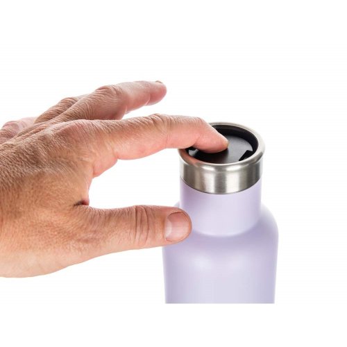 Dvoustěnná cestovní termoska CALA v barvě lila, je vhodná na teplé i studené nápoje. Vnější část je vyrobena z nerezu 201, vnitřní část z nerezu 304 a víčko z plastu. Využitelný objem je 450 ml. Tělo termosky je vakuové, udrží tak nápoje déle horké či studené. Doporučujeme uchovávat ve svislé poloze. Ve víčku je kulatá pojistka - termo-bezpečnostní uzávěr, díky kterému je možné nalévání nápoje bez odšroubování víčka, stačí jednoduše zatlačit pojistku.