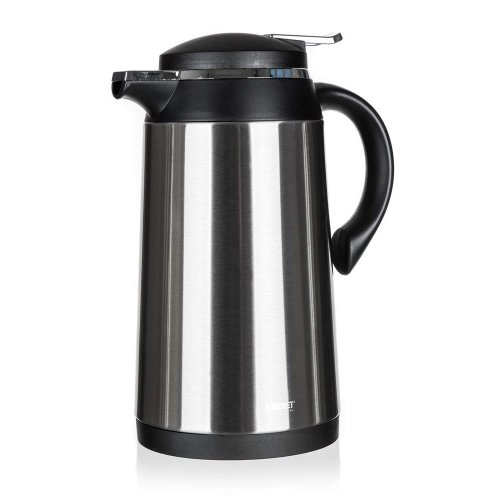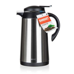 Termokonvice nerezová CONTE 1 l, má skleněnou termoizolační vložku a vnější část je vyrobena z nerezi a plastu. Termokonvice je vhodná pro teplé i studené nápoje. Rozměry: výška 26 cm, průměr 13 cm, využitelný objem 1 l. Materiál: povrch nerez / plast PP / pochromovaný ABS plast, silikonové těsnění, vnitřní část skleněná.