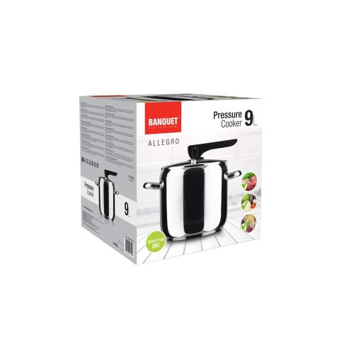 Nerezový tlakový hrnec 9 l s pákovým uzávěrem, průměr 20,8 cm, výška 24 cm, nerez kvalita 18/0, tloušťka stěny 0,6 mm, silné sendvičové dno. Víko obsahuje dva ventily, hlavní pracovní ventil a pomocný bezpečnostní ventil. Tlakový hrnec je určen pro rychlou přípravu pokrmů a lze jej používat na všechny typy várných desek včetně indukce.