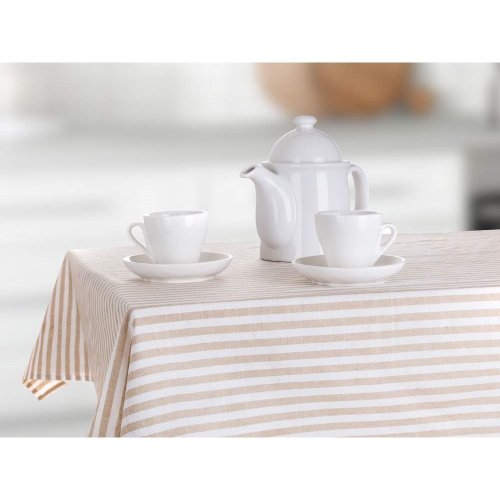 Ubrus DENIM Cappuccino je velmi užitečná věc v domácnosti a dodá vašemu stolování šmrnc. Ubrus je vyroben z 85 % polyesteru a 15 % bavlny. Rozměry: 120 x 140 cm, váha 350 g.