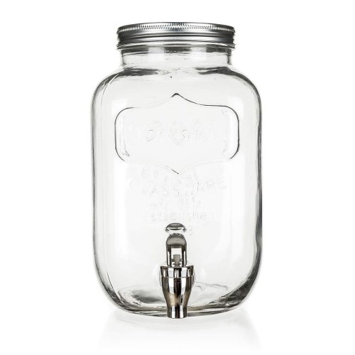 Skleněný zásobník na nápoje BRISA o objemu 4 l slouží k servírování osvěžujících nápojů na oslavách a letních párty. Zásobník je vyroben z kvalitního čirého skla a je opatřen praktickým plastovým kohoutkem pro dávkování nápojů. Zásobník je určený k podávání pouze chladných a svěžích letních nápojů typu domácí limonáda, ovocný džus, ledový čaj a podobně. Široké hrdlo umožňuje do nádoby pohodlně vkládat led nebo kousky ovoce.