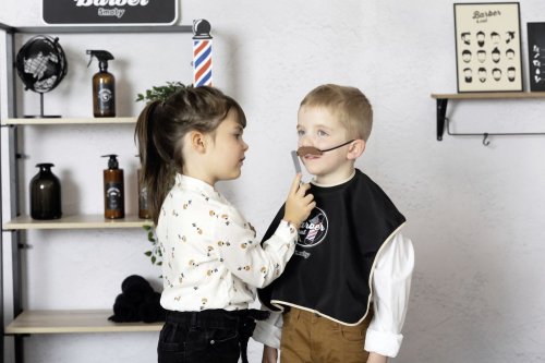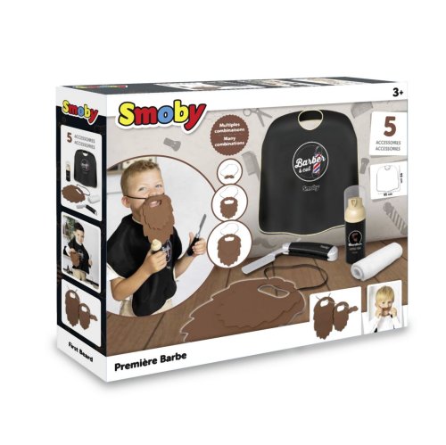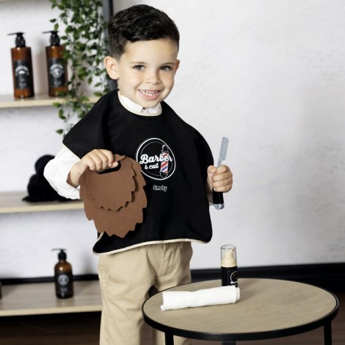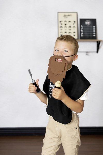 Holičská sada složená z 5 realistických doplňků: vousů, látkového pláště, holicího strojku, lahvičky s holící pěnou a ručník. Vousy mají několik vrstev plsti opatřené systémem suchého zipu, který umožňuje vytvořit více kombinací s různými tvary a délkami knírů a vousů. Zábavná sada, která vám umožní postarat se o vousy malých i velkých. Od 3 let.