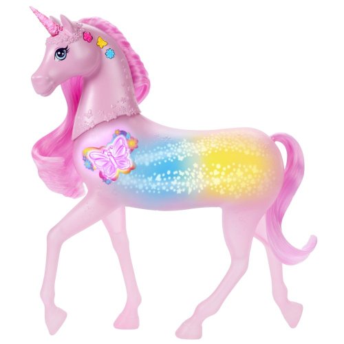 Blýskněte se s Barbie kouzelným jednorožcem! Děti mohou rozsvítit 20 různých světelných a zvukových kombinací s velkým množstvím způsobů hry. Pohlaďte hlavu jednorožce a spusťte kouzelnou show plnou světel, zvuků a hudby. Stiskněte jedno, dvě nebo všechna tři tlačítka na jednorožci a užijte si úchvatnou přehlídku světel, zvuků a hudby. Barvy tlačítek odpovídají růžovým, žlutým a modrým světýlkům, takže si děti mohou přizpůsobit barevné kombinace a vytvořit si vlastní jedinečnou světelnou jednorožčí show. Barvy a vzhled výrobku se mohou lišit.
