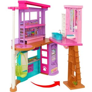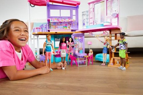 Tento Barbie® Párty dům v Malibu inspiruje k nekonečným hrám díky dvěma patrům a šesti hracím zónám včetně ložnice, koupelny, kuchyně, jídelny, obývacího pokoje a šatny. Děti se mohou rovnou nastěhovat a vyprávět jakýkoli příběh díky více než 30 předmětům, a to včetně zábavného vybavení, jako jsou židle, jídelní stůl s připojitelnou deskou a další. Zábavné detaily a moderní povrchové úpravy otevírají dveře všem druhům vyprávěcích her, stylová houpací židle se může pohybovat nahoru a dolů a sloužit jako výtah a celá sada se dá složit pro snadný úklid a přenášení. Panenky se prodávají samostatně. Barvy a vzhled výrobku se mohou lišit.
