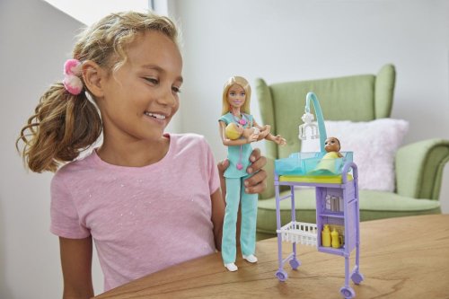 Objevte svět zábavy při učení s herními sety Barbie® Povolání! Každý herní set promění pracovní prostor v místo na hraní, které obsahuje panenku, s prací související prostředí a doplňky, díky nimž mohou mladí pracanti prozkoumat své budoucí povolání. Panenka Barbie® ráda pomáhá a pečuje o druhé. Děti si mohou vybrat z oblíbených povolání, která vystihují toto smýšlení - od povolání učitelky výtvarné výchovy ve třídě až po dětskou lékařku v ordinaci a další. Každý herní set obsahuje panenku Barbie®, menší panenku nebo dvě - například panenku studenta, batolete nebo dvojčata dětských pacientů - a zábavné prvky pro učení a příležitost ke hře. Prodávají se samostatně dle aktuální nabídky. Panenky nemůžou stát samostatně. Barvy a vzhled výrobku se mohou lišit.