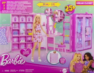 Barbie® Šatník snů v pastelových barvách s panenkou je vytvořený pro maximální zážitek ze hry s módou a přináší vychytávky ve formě rozkládání šatníku, má 2 stojany na oblečení, botník, kosmetický stolek, zrcadlo a koutek pro domácí mazlíčky. Součástí je také panenka Barbie® a 27 doplňků pro vyprávění příběhů, a to včetně štěňátka, měkkého kvalitního oblečení a barevných stylových doplňků! Panenka nemůže stát samostatně. Barvy a provedení se mohou lišit.