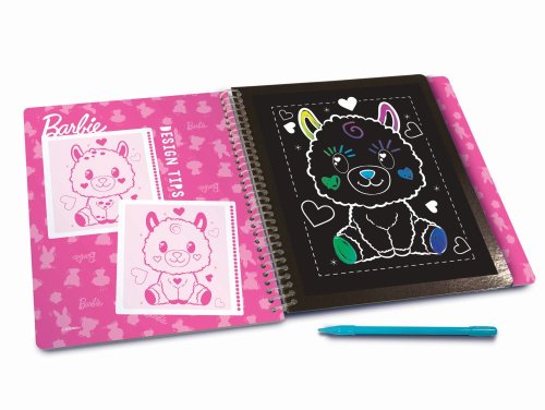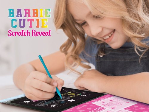 Objevte kouzlo barev se škrábačkou Barbie ve fantastickém designu Fantasy and Cutie. S přiloženým perem seškrábněte horní vrstvu černé barvy a objevte jasné duhové barvy s fantastickými odstíny. Vhodné pro děti od 4 let.