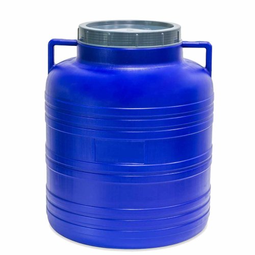 Plastová širokohrdlá konev (sud) se šroubovacím víkem o objemu 20 litrů. Vhodný ke skladování a přepravě sypkých, kusových a pastovitých hmot v chemickém, potravinářském průmyslu či zemědělství. Sud je vhodný pro styk s potravinami. Tento sud tedy lze používat např. na kvašení ovoce. Sud má tvarované hrdlo, které částěčně plní funkci těsnění, netěsní na 100%. Široké kulaté dno má výbornou stabilitu. Průměr 28 cm a výška 37.5 cm, průměr hrdla 13.5 cm. Barva bílá nebo modrá dle skladové dostupnosti. EAN 6421937090089