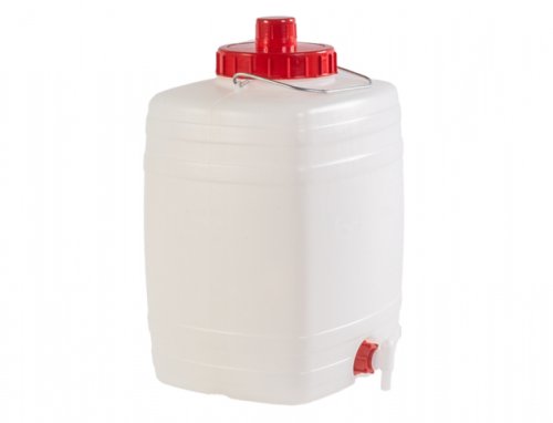 Plastový barel s otočným uzávěrem a výpustným kohoutkem je určen pro transport a skladování tekutin. Má certifikát pro kontakt s potravinami. Výška: 42 cm, šířka: 27 cm. Objem: 20 l.