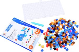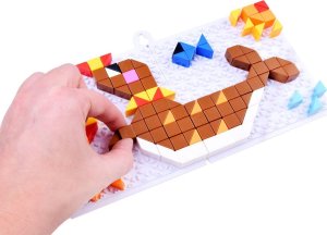 Kreativní sada pro vytváření barevných obrázků vlastníma rukama. Sada se skládá z plastových kostiček, které se umísťují na hrací plochu. Kostičky by měly být přitisknuty na desku tak, aby tvořily obrázek. Můžete reprodukovat obrázky podle obrázkového návodu nebo si vymyslet vlastní. Sada obsahuje: - 2 podložky pro vytvoření desky - více než 248 barevných kostiček - špachtli na vylupování - držák na zavěšení obrázku - brožura s nápady Rozměry: - skládací podložka o celkovém rozměru 23 x 12 cm - kostky 1,1 x 1,1 x 1,1 cm Tato hračka rozvíjí dětské - dovednosti tvůrčího myšlení - rozpoznávání barev - kombinování barev - manuální dovednosti