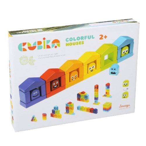 CUBIKA je nová značka dřevěných hraček vyrobených pouze z ekologicky pěstovaného dřeva s velmi precizním opracováním a líbivým designem. Dřevěná stavebnice se 30 barevnými prvky včetně kostiček s emotikony nabízí mnoho zábavy. Každý z šesti domečků má svého obyvatele v příslušné barvě, které je třeba správně do domečku umístit. Děti se tak formou zábavné hry učí poznávat barvy. Fantazii při stavitelské činnosti se zde však meze nekladou. Z kostiček lze hravě postavit různé architektonické komplexy. Sortiment hraček značky CUBIKA pomáhá dětem rozvíjet především senzomotorické schopnosti a dovednosti, logické myšlení, kreativitu, představivost a různé poznávací znalosti. Hračky jsou vyrobeny z nejkvalitnějšího javoru a buku a k barvení se používají též vysoce kvalitní barvy na vodní bázi, které jsou naprosto bezpečné pro děti a nemají žádný zápach. Všechny výrobky této značky mají německý certifikát TÜV a jsou vyrobeny dle evropské normy pro bezpečnost hraček EN 71. Nevhodné pro děti do 2 let. Vyrobeno v Evropě.