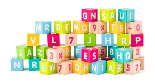Věk: 3+ | Tyto různobarevné kostky mají na sobě písmena a číslice a hodí se nejen k učení prvních slov, ale i ke stavění hradů a domečků. Velikost kostičky: 3,5cm