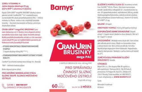 Cran-Urin™ megaPAC BRUSINKY jsou navíc obohaceny o vitamin H (biotin), který přispívá k udržení normálního stavu sliznic (např. sliznic močového ústrojí). Kvalita použitého extraktu a s tím související vysoký obsah PAC jsou pak nejdůležitějšími parametry při hodnocení kvality kanadských brusinek.