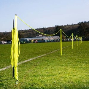 Vytyčovací systém Merco Barrier 60M je praktická pomůcka určená pro rychlé a přehledné vymezení prostoru při venkovních sportovních i společenských akcích. Sada obsahuje šest pevných plastových tyčí s ocelovými hroty do země, 60 m dlouhé lanko, dvě karabiny a U kotvy. Vše je zabalené v praktickém polyesterovém vaku se zipem a popruhy přes rameno. Díky vaku celou sadu pohodlně přenesete a uskladníte. Vytyčovací systém Barrier 60M představuje spolehlivý a praktický nástroj pro dočasné vymezení prostoru v exteriéru. - rychlé a jednoduché vymezení prostoru - pro venkovní použití - stabilní ukotvení díky ocelovým kolíkům - dlouhé lanko pro variabilní uspořádání - materiál: plast, ocel, PE - délka tyče: 99 cm + hrot 11 cm - průměr tyče: 3 cm - lanko: délka 60 m, průměr 5 mm - hmotnost sady: cca 4 kg