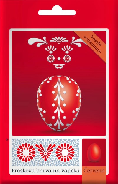 Prášková barva umožňuje snadnou a rychlou aplikaci výrazných barev. Určené na barvení velikonočních vajec. Barva: červená.