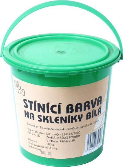 Ekologicky čistý práškový přípravek používaný k zastínění skleníků a podobných prosklených prostor před nadměrným slunečním svitem. Je složen ze speciální přírodní hlinky, zvlášť pro tento účel připraveného přírodního pojiva a barevného pigmentu. Vodní suspenze se nanáší štětcem nebo postřikem. Po zaschnutí je dlouhou dobu odolná proti smytí deštěm. Při potřebě odstranění je možné vodou navlhčený nátěr rozrušit štětcem, houbou a smýt proudem vody. Na skle nezůstanou žádné stopy po nátěru. 500 g práškové barvy se rozmíchá ve 2,5 l vody a poté se může nanášet na skleněnou plochu - na 30 až 50 m2 plochy. Balení: 500 g.