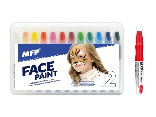 Obličejové barvy 12 odstínů. Jednoduše umyvatelné vodou a mýdlem. Nedoporučujeme nechávat na obličeji déle než 24 hodin. Nepoužívejte na rty a oči. Rozměry balení 22 x 14 x 2 cm.