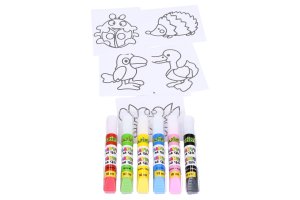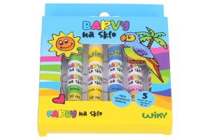 Barvy na sklo 5+1 10 ml. Obsahuje: 5 barev (červená, zelená, žlutá, modrá, růžová) 10 ml + kontura. černá 10ml + 2 fólie + šablonové obrázky.