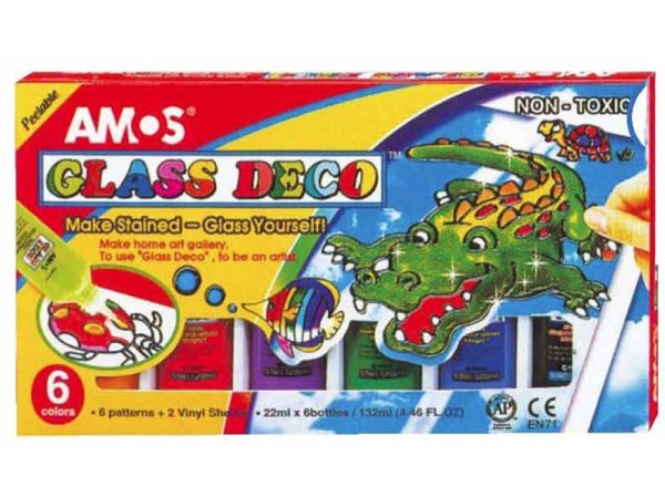 NAZDOBTE SI SKLO DLE VLASTNÍ FANTAZIE! Vhodné na okno, zrcadlo, dlaždice, aj.Balení obsahuje:- 5 ks barev na sklo 22 ml- 1 ks kontury černé 22 ml- 6 ks předloh na papíře- 2 ks fólií na malování- ilustrační letákNÁVOD:Přiložte fólii na šablonu.Obkreslete konturou obrys šablony a nechte 1-2 hodiny schnout.Poté vybarvěte obrázek a nechte 24 hodin schnout.Opatrně ho sloupněte z fólie a umístěte na zvolený povrch.