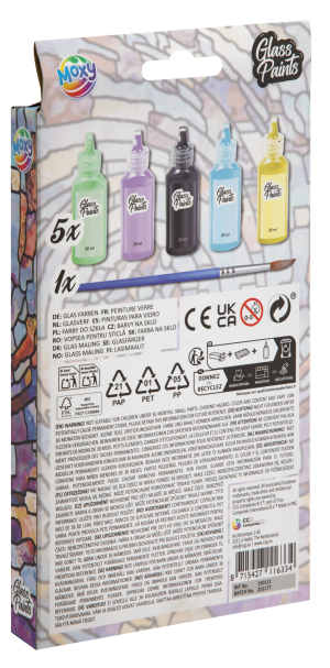 Kreativní sada barev na sklo pro snadné a zábavné malování na hladké povrchy, jako je sklo, porcelán, keramika či plexisklo.Ideální pro děti i dospělé, kteří rádi tvoří originální dekorace.lahviček barev na sklo (každá 20 ml),štětec pro nanášení barev.Barvy mají syté odstíny, snadno se míchají a po zaschnutí vytvářejí průsvitný, lesklý efekt.Vhodné pro výtvarné tvoření, zdobení sklenic, váziček, svícnů nebo oken.