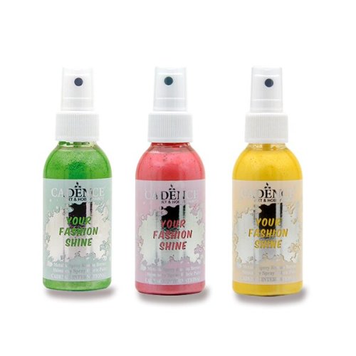TIPY NA POUŽITÍ, Lze je aplikovat pomocí spreje. Barvy se hodí také k nanášení štětcem nebo vybarvování podle předem vytvořených motivů. Díky své konzistenci se barva dokonale spojí s podkladovou, látkou, nevytváří tuhé nánosy, malovaný textil si zachová dokonalou pružnost. Barvy se za mokra do sebe zapíjí a vytváří nové odstíny. Před použitím je nutné barvu důkladně, promíchat. Nízká spotřeba barvy na cm²., Fixace barev se provádí důkladným zažehlením přes pečicí papír 24 hod. po aplikaci. Praní naruby na 40 °C., Doporučujeme používat jemné prací gely, agresivním pracím práškům se doporučujeme vyhnout., OBJEM 100 ML., Barvy jsou netoxické, na vodní bázi. Mají certifikaci EN 71., , Jak v praxi používat barvy na textil Cadence? Přečtěte si pár tipů >>