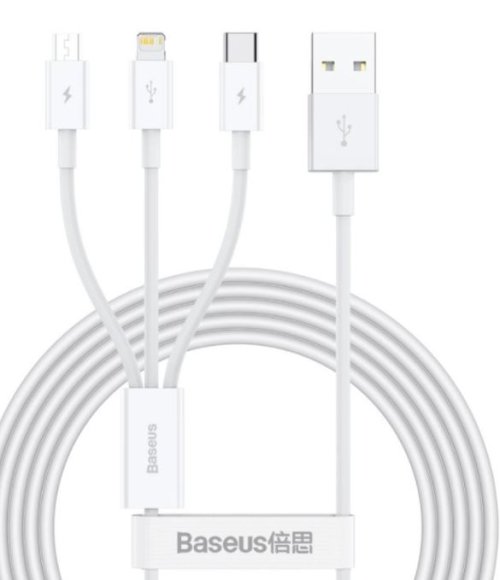 Baseus Superior 3v1 kabel pro nabíjení zařízení s USB-C, Lightning a microUSB z USB konektoru notebooku nebo síťové nabíječky.