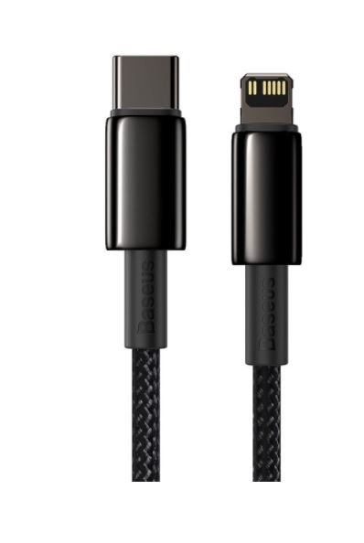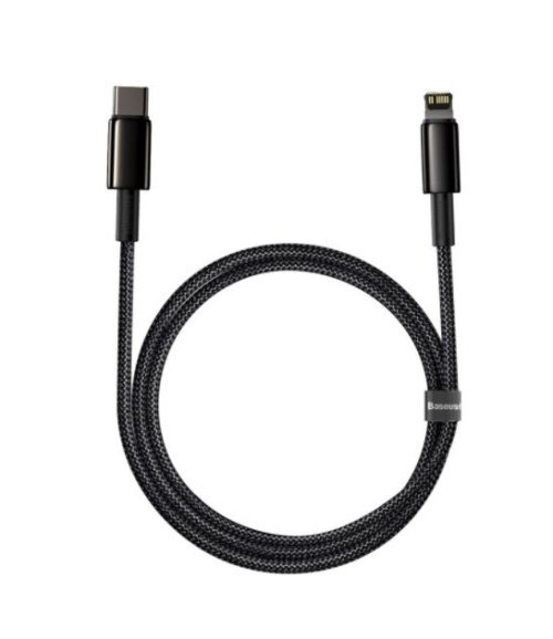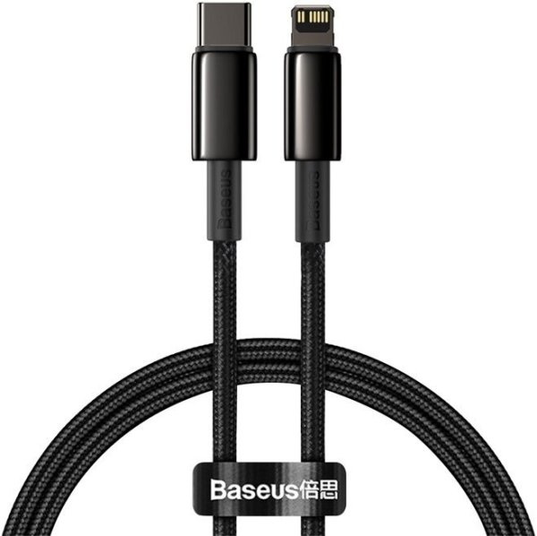 Baseus Tungsten Gold kabel pro nabíjení Lightning zařízení z USB-C nabíječky nebo konektoru notebooku. Kabel je opletený pro maximální pevnost a dlouhou životnost, podporuje až 20W nabíjení. V balení dále najdete suchý zip pro pohodlné a snadné sepnutí kabelu např při přepravě.