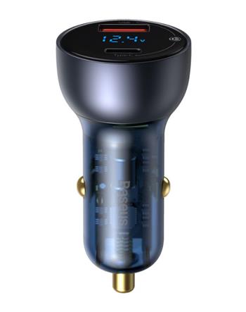 Baseus Particular Digital Display Dual USB nabíječka s výstupem USB a USB-C a LED displejem se stavem nabití akumulátoru ve voze a vysokým výkonem 65W. Nabíječka je vyrobena z atraktivního poloprůhledného ABS plastu. Podporuje nabíjecí proud 4.5V, 5V, 9V, 12V a 20V