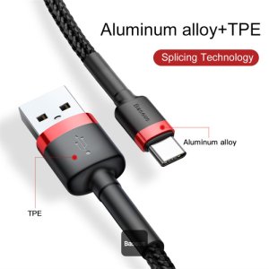Baseus Kabel USB-A na Type-C řady Cafule – 2A rychlé nabíjení a 480 Mb/s vysokorychlostní přenos dat, nylonové opletení, 2M – černý