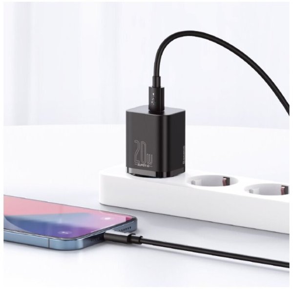 Baseus TZCCSUP-B01 Super Si Quick Nabíječka USB-C 20W + Simple Wisdom Data Kabel USB-C to iP 1m Black