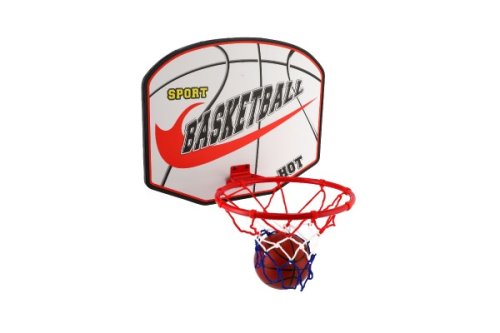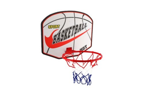 Basketbalový koš s dřevěnou deskou na pověšení, míč a pumpička na nafouknutí míče. Velikost dřevěné desky 48,5 x 39,5 cm. Průměr míče je 14 cm. Vhodné od 3 let.
