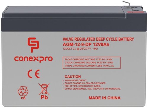 Olověná AGM Deep Cycle baterie Conexpro 12V/9Ah je spolehlivým zdrojem energie s dlouhou životností až 10–12 let. Díky konstrukci typu Deep cycle zvládá opakované hluboké vybíjení a nabíjení, což z ní činí ideální řešení pro solární systémy, karavany, lodě, UPS i bezpečnostní a IT technologie.
